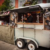 After a two year design and build our gorgeous vintage 1965 Sinclair Horsebox bar is on the road! Beautifully renovated with special finishes, our bar can provide refreshment, atmosphere and seating for your guests.